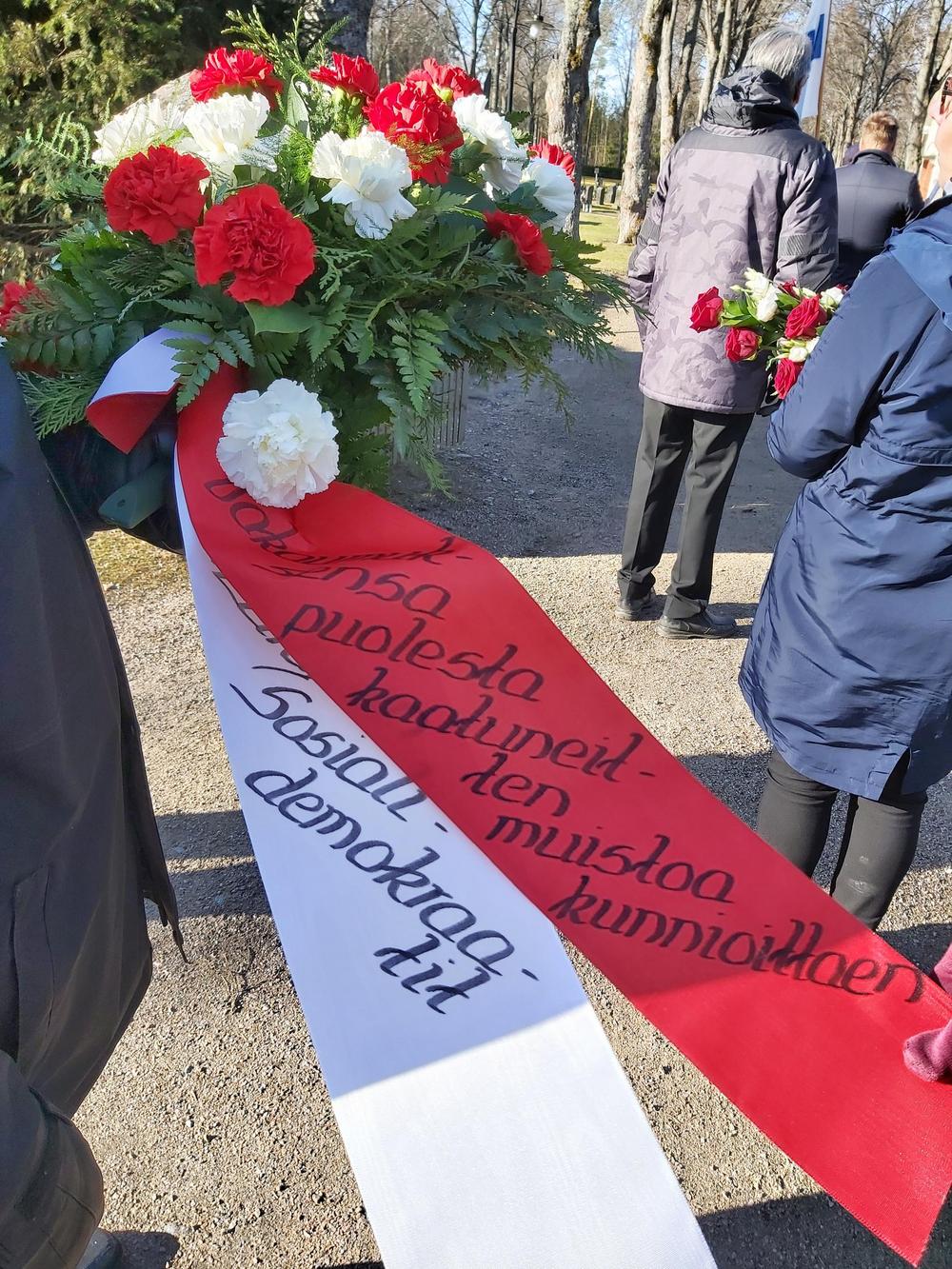 1.5.2023 oli Vappupäivän perinteinen vakaumuksensa puolesta kaatuneiden haudalla sekä sankarihaudalla käynnit. Eurajoen sosialidemokraattien ja Eurajoen vasemmiston yhteinen lippukulkue lähti Irjanteen hautausmaalla kohti Punaisten hautapaasia, jossa laskettiin kauniit kukkaseppeleet. Sosialidemokraattien puolesta tehtävän hoitivat Soili Veijonaho ja Matti Valtonen. Haudalla puheen piti Eurajoen valtuuston puheenjohtaja Ilona Sjöman.