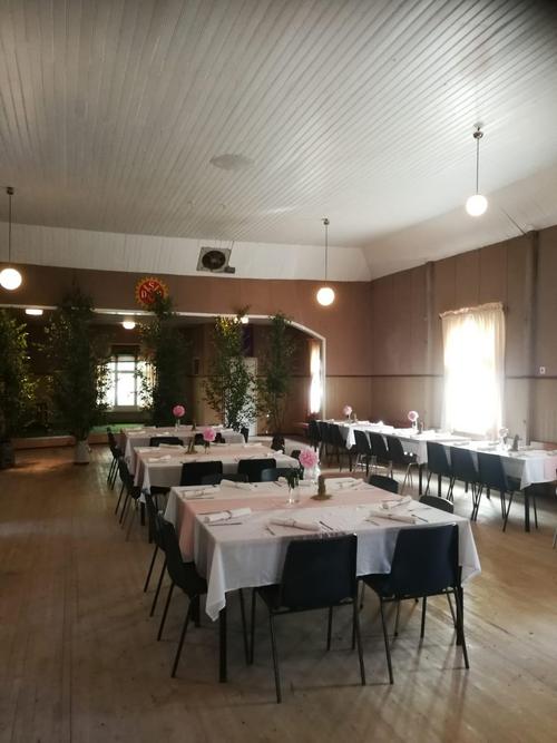 Kokous- ja juhlatilat sekä astiastot 100 hengelle.